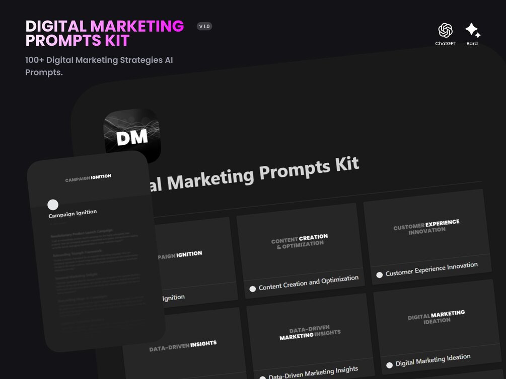Digital Marketing Prompts Kit - 100+ Digital Marketing Strategies AI Prompts